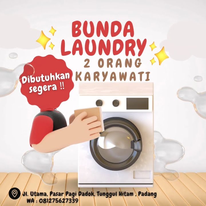 Padang, posinfo.co – Segera, Bunda Laundry saat ini membutuhkan dua orang karyawati. Bagi anda yang berminat segera kirim lamaran.