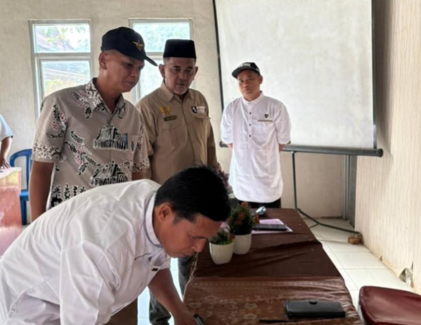 Dharmasraya — Camat Asam Jujuhan Mashuri Thaib melantik empat anggota Badan Musyawarah (Bamus) Antar Waktu Nagari Sungai Limau di Aula Kantor Wali Nagari setempat, Kamis (5/3/2026).