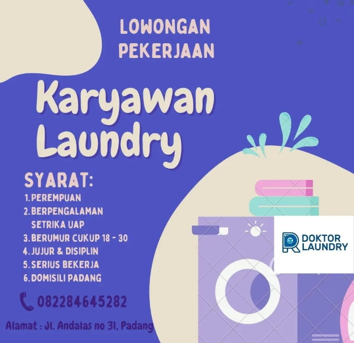 Padang, posinfo.co – Bagi yang tertarik dan berminat bekerja di laundry, saat ini Doktor Laundry sedang mencari karyawan.