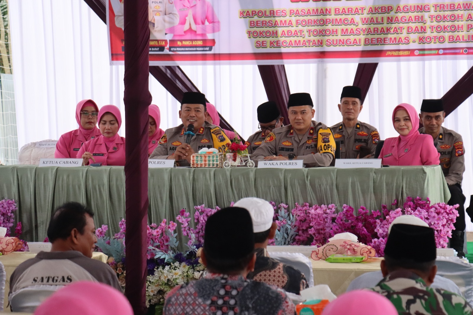 Kedatangan rombongan Kapolres Pasaman Barat AKBP Agung Tribawanto, S.Ik didampingi Wakapolres Kompol Chairul Amri Nasution, S.Ik., M.H para Pejabat Utama (PJU), dan Ketua Bhayangkari Cabang Pasaman Barat Ny. Panca Agung serta Pengurus Bhayangkari Cabang Pasaman Barat dan disambut oleh Kapolsek Sungai Beremas AKP Efriadi didampingi Ketua Bhayangkari Ranting Sungai Beremas beserta para personel.