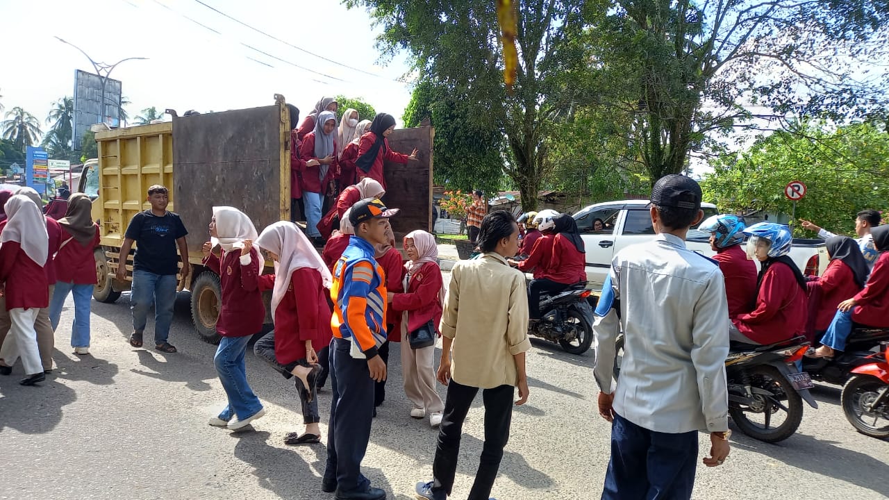 Aksi solidaritas sebagai bentuk perjuangan satu almamater Universitas Undhari Dharmasraya ratusan mahasiswa mendapat senyum hangat dari Pemkab setempat.