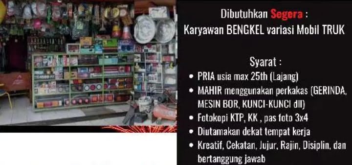 Saat ini Millenium Aksesoris mencari karyawan untuk posisi karyawan bengkel.